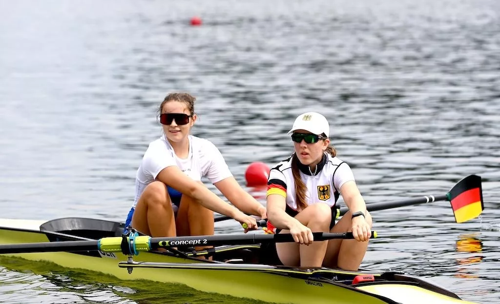 Unsere Emma und ihre Partnerin Mia Tetiwa vom Ruderverein Nürnberg v. 1880 waren von unserem Jung-Bundestrainer David so motiviert, dass sie beim B Finale der U19 Weltmeisterschaften im 2- einen überragenden Start-Ziel-Sieg hinlegten. Sie konnten ihren hart erkämpften Vorsprung vor den Vize-Europameisterinnen aus Frankreich halten und sicher über die Ziellinie bringen.