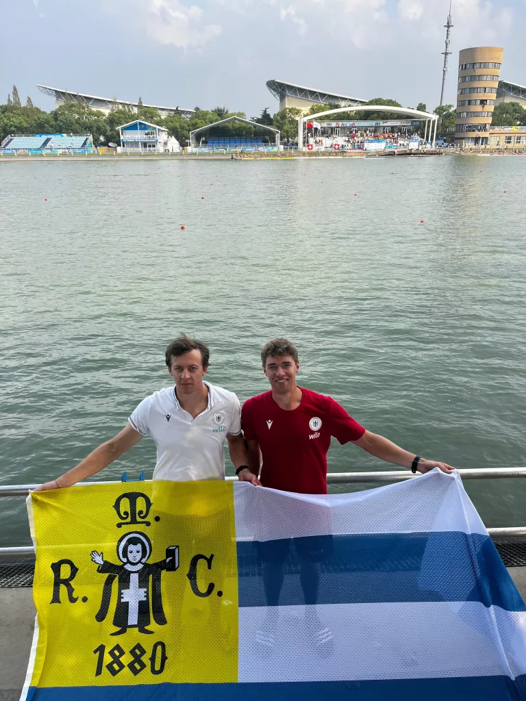 Kaspar Virnekäs und Tom Tewes haben buchstäblich die Flagge des MRC auf der Ruder WM in Shanghai hochgehalten.
